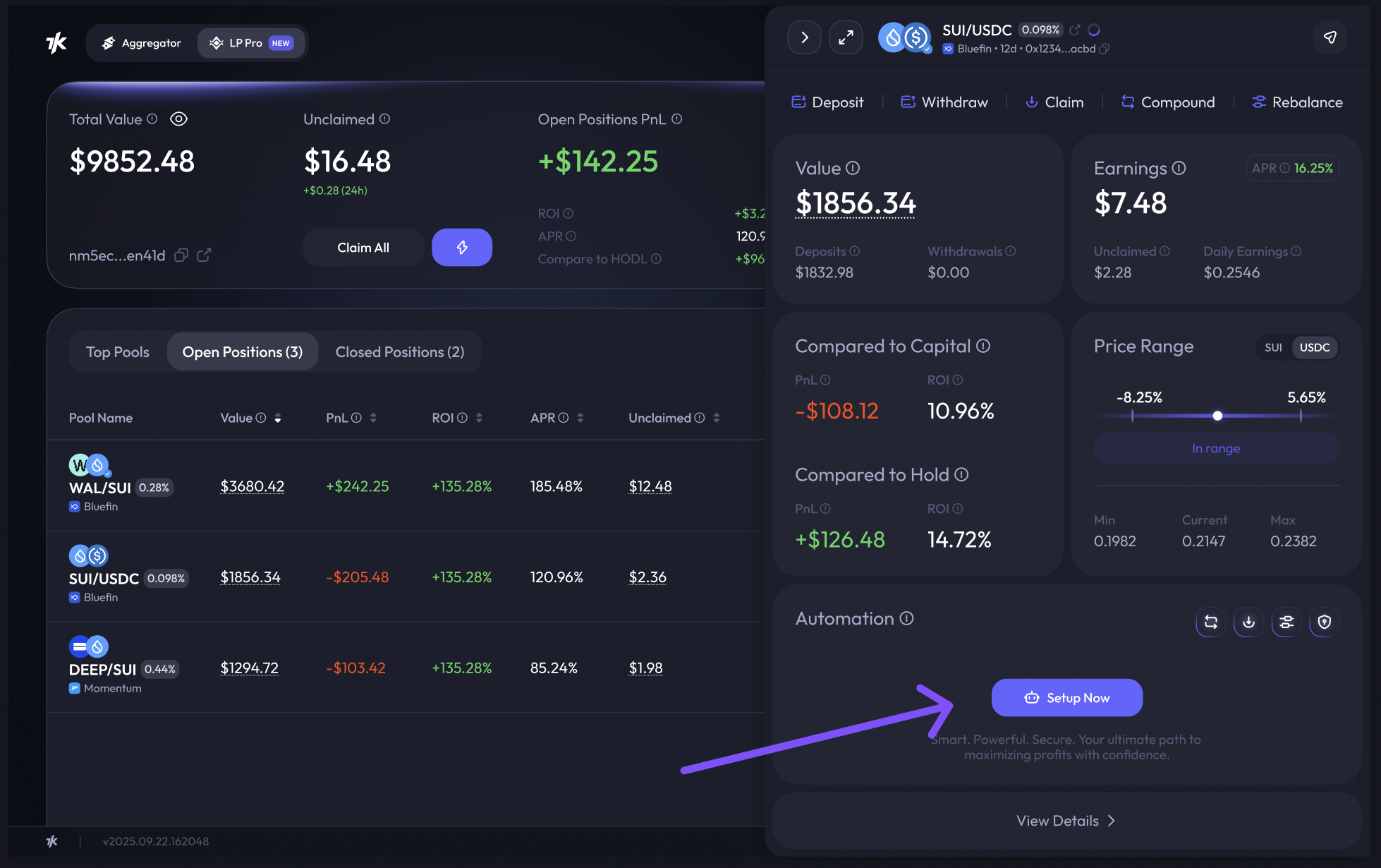 Liquidity Providers (LPs) often have to perform continuous manual operations to optimize profits, protect assets, and control risks associated with providing liquidity. Executing tasks like claiming rewards, reinvesting, rebalancing, or exiting a pool manually is time-consuming and risks missing critical opportunities.\